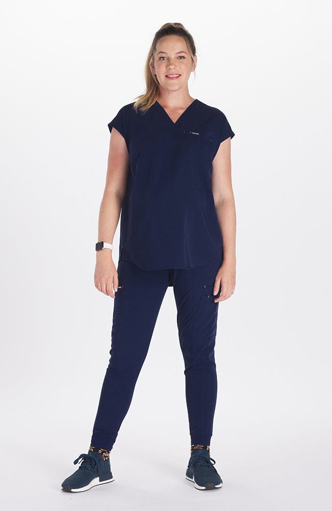 Experience a new level of comfort and style with the Pia maternity scrub top. Designed with a dropped shoulder tunic style fit, Pia features a slightly oversized fit with room to grow. The gusset underarm offers extra coverage while the pleated back and chest pocket add a touch of functionality.